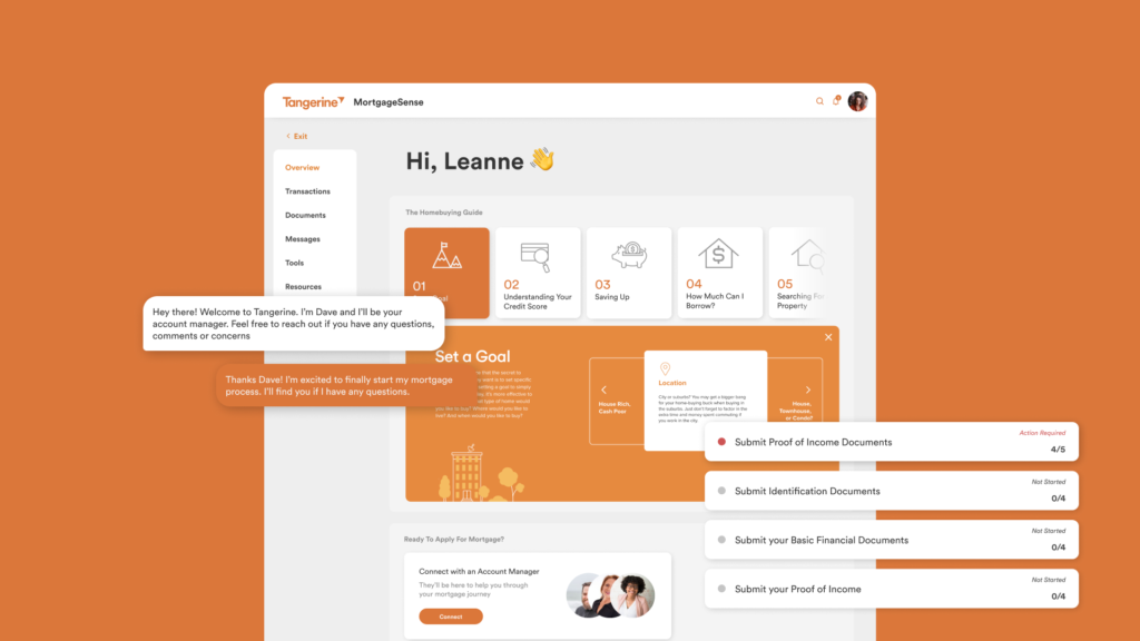 Tangerine is a digital-only bank that offers all of their services in a self-service format with the exception of mortgages. With financing a home is a stressful and complicated process for first-time home buyers who have little to no knowledge of the mortgage process.