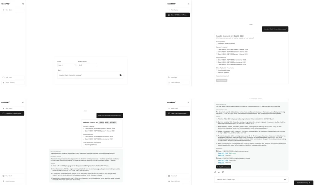 Vi is an AI assistant that helps service technicians at agricultural dealerships quickly find reliable repair info without having to dig through complicated manuals or confusing portals. It makes their day-to-day work a lot smoother and saves them time.